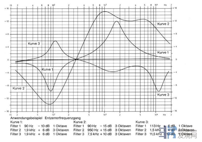 dbx 31 band graphic EQ 4. Parametric EQ. 通常至少会有三段(低中高频段). 参数型EQ在每一个区段中, 使用者可以选择想要调整的频率, 调整需要的大小, 以及影响的频率范围的大小(Q). 这也是最常使用在录音或是后制上的EQ方式. 顶级的Parametric EQ甚至可以针对单一频率进行调整, 用来修补录音的内容. 由于Parametric EQ调整的弹性非常大, 非常适合音源响应的Shaping之用. 我个人就是使用Parametric EQ在音源与放大器之间做为补偿频率响应平衡之用. 前文提到的Cello Palette以及FM 268则属于半参数型, 因为厂商已经固定了六个频率.
