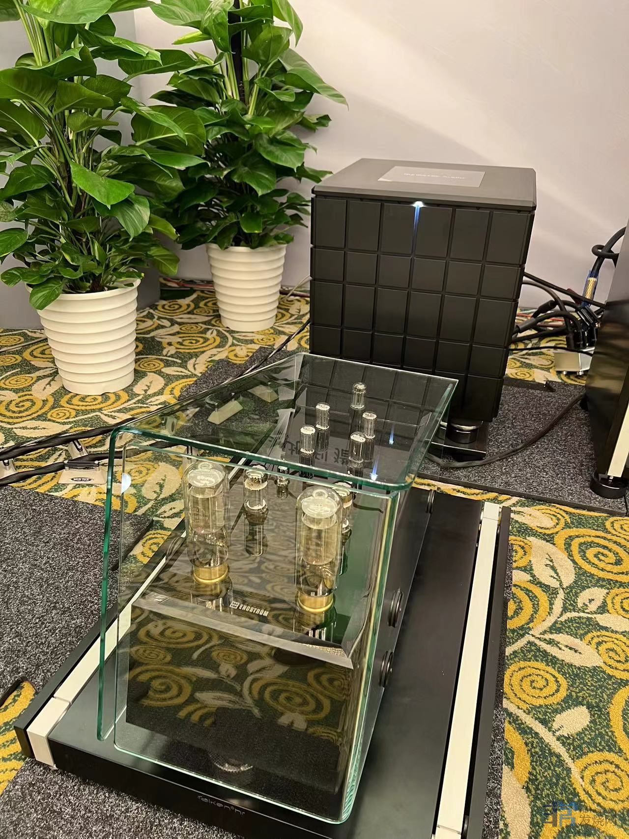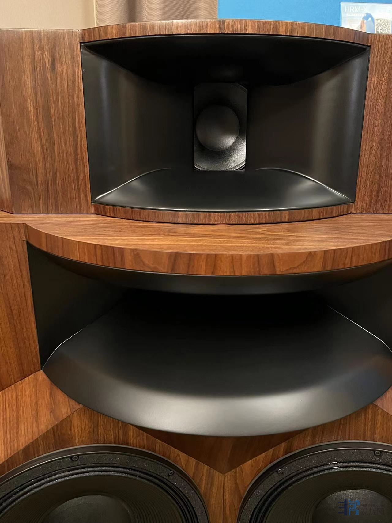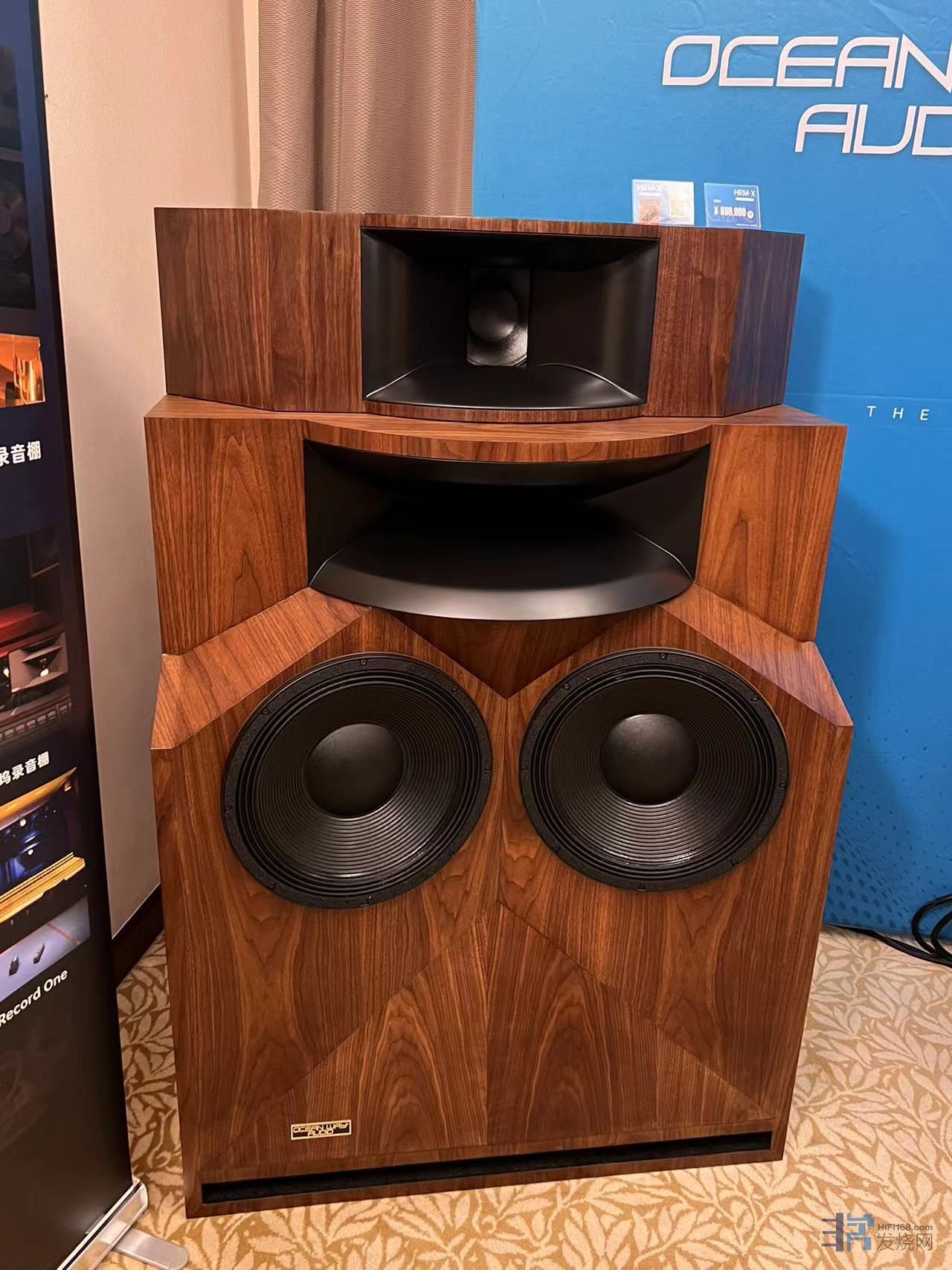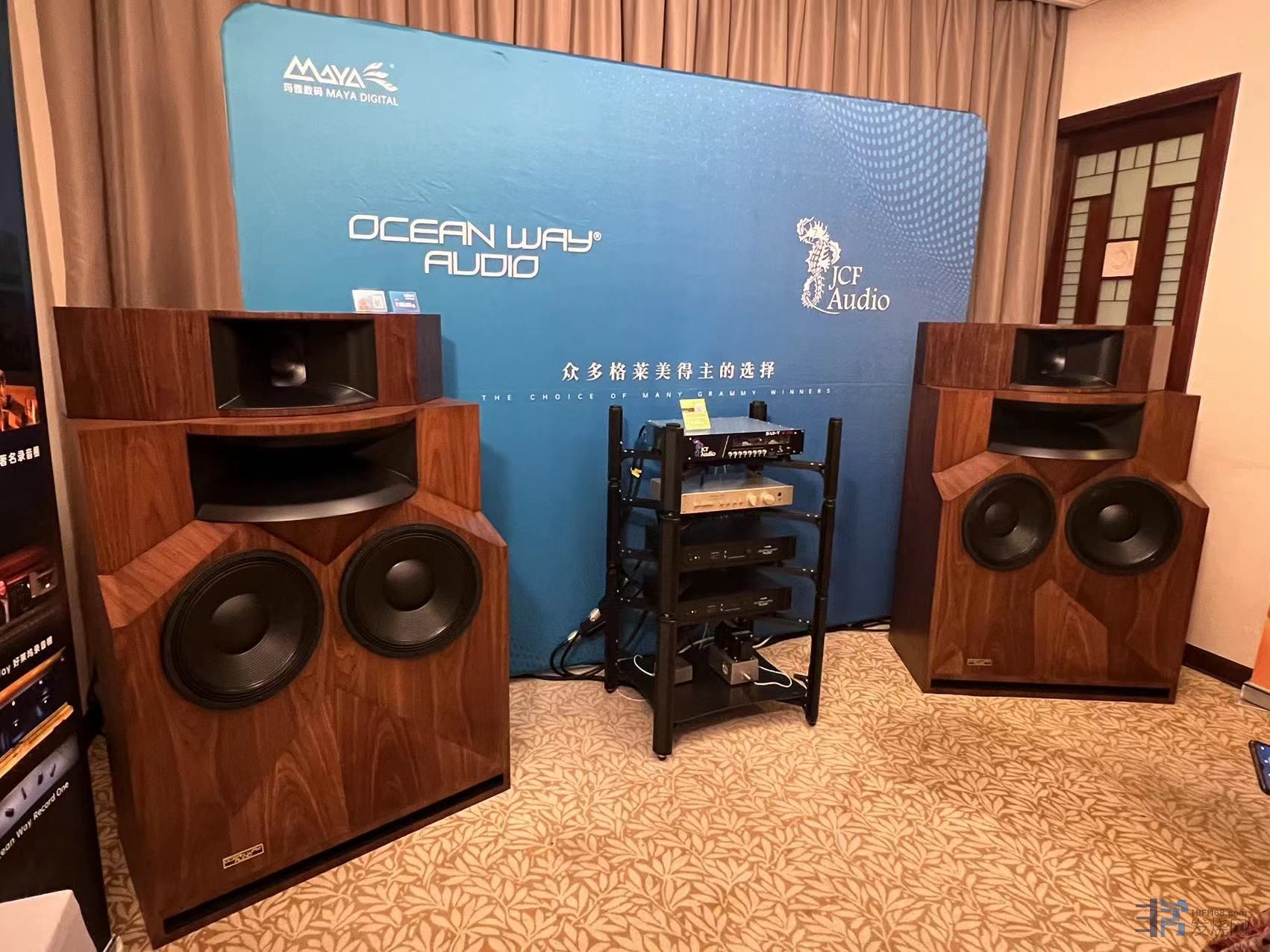大洋路Oceanway这个展房声音表现是最让我感到惋惜的。这个全球首展的HRM-X顶级主动电分监听音箱拥有着做了声衍射修正的铍膜径向号角驱动其,8寸波导号角,以及双15寸的超级低音。配合上一台拥有8声道胆输出解码JCF AUDIO JCFDA8-V,如此豪华的组合,在区区20平左右的空间里虽然能感受到其强烈的能量涌动和富有密度的中高频,但很可惜,如此庞大的巨无霸在这么小的空间下中频与低频结像完全失去了应有的水准,低频完全听不出乐器应有的形体感和瞬态对比,中频实体感也差强人意。相反,在套间里面的小房间内,他家最小号的PRO3有源电分书架箱与胆解码配合开声倒给了我不小的惊喜。低频下潜和清晰度都属于一流水准。中频的实体感和密度也给了我很不错的印象,虽然这款音箱中低音和高音喇叭都采用了D类功放。但在胆解码的加持下,高频没有出现太过平面或生硬的情况,只是音色稍显平实一些而已,总体而言是非常全面平衡的声音。不到4万元的售价在目前的进口音响品牌里已算超值了。