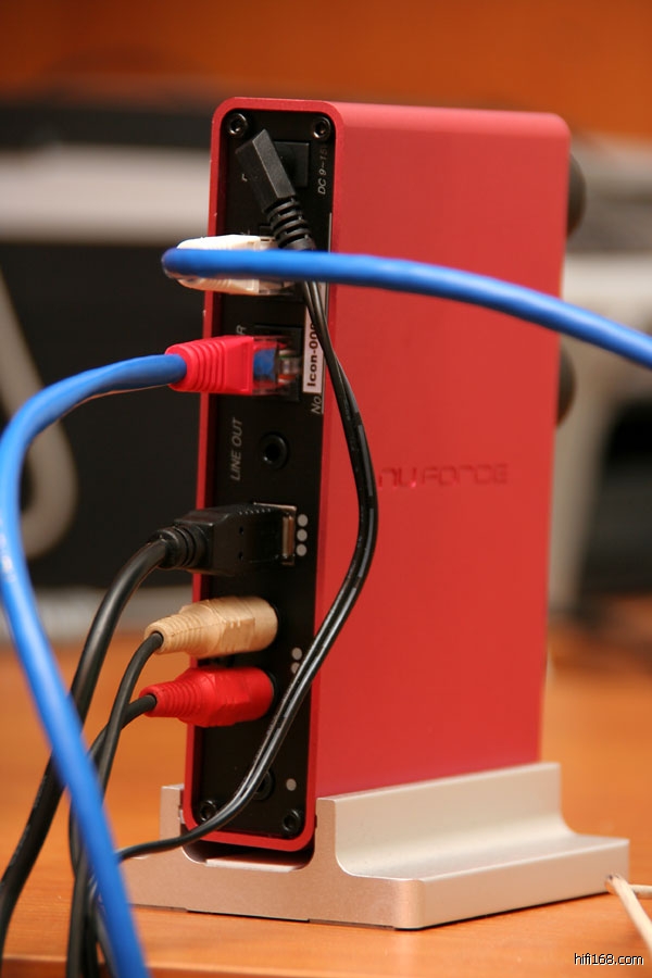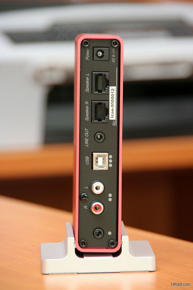 Icon共有3组输入,分别是3.5mm端子输入,给IPOD、DISCMAN等移动设备,第二组是RCA端子输入,可以给PC电脑、CD机等输入,第三组是USB输入,可以通过PC直接输出数码讯号给Icon。