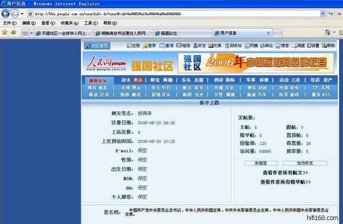 虽然我平时的工作比较忙,不可能每天都上网,但是,我还是争取抽时间尽量上网。我特别要讲的就是人民网强国论坛也是我经常上网必选的网站之一。
