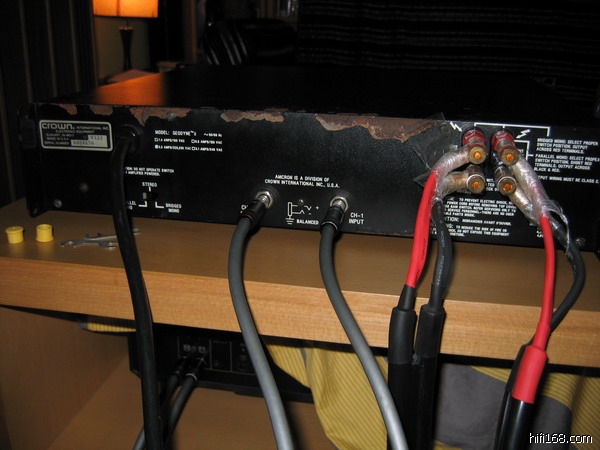 昨日一位北京做二手专业器材的朋友带了一台皇冠专业功放到我这里,接上我的先锋5仔,感觉中高频温暖、细腻、柔顺,低频可能是我用了金属脚架加大理石的关系,低频没有推出来,也或许是我的这对喇叭比较对味胆机。听机器主人说,这台机器的风扇被他换了,而且被调整到70度才启动,变压器也做了避震处理,反正从上午11点到晚上10,风扇没有启动过,而且也没有传说中大功率变压器的翁声。听朋友说,这台功放搭配ATC效果不错,机主称此机搭配单拿、JBL均有上佳的表现。关键这是一台准后级,(面板有左右独立声道的输出调节,可以用CD直驱,当合并功放用,所以可玩性相当好)。