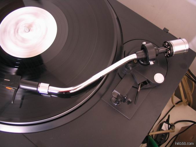 不锈钢S型高级唱臂,不锈钢可调臂头,铸铝转盘,皮带驱动,自动回臂,33/45转可调.弹簧避震机脚外套橡胶脚