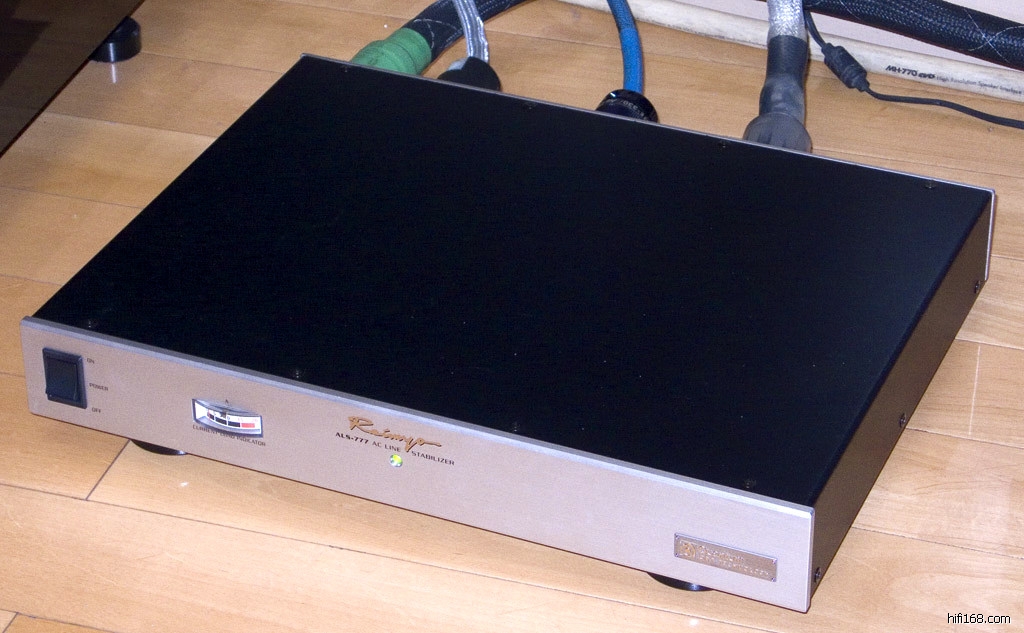 垫好Harmonix TU-210ZX后开声,第一感觉是声音变慢了,但同时声音变得更加优美动听了,再仔细听了一段时候后发现声场也同样缩小了(比高丘的缩水要好些)。按同学的说法就是没用钉的时候是在爽音响,用了钉后就是在欣赏音乐,那么就没有二全的方法了吗?就在这时候一个朋友打电话过来,原来他那里到了一样同是木内和夫的毒物—Reimyo ALS-777电源处理器,于是立马让朋友带着毒品赶过来。