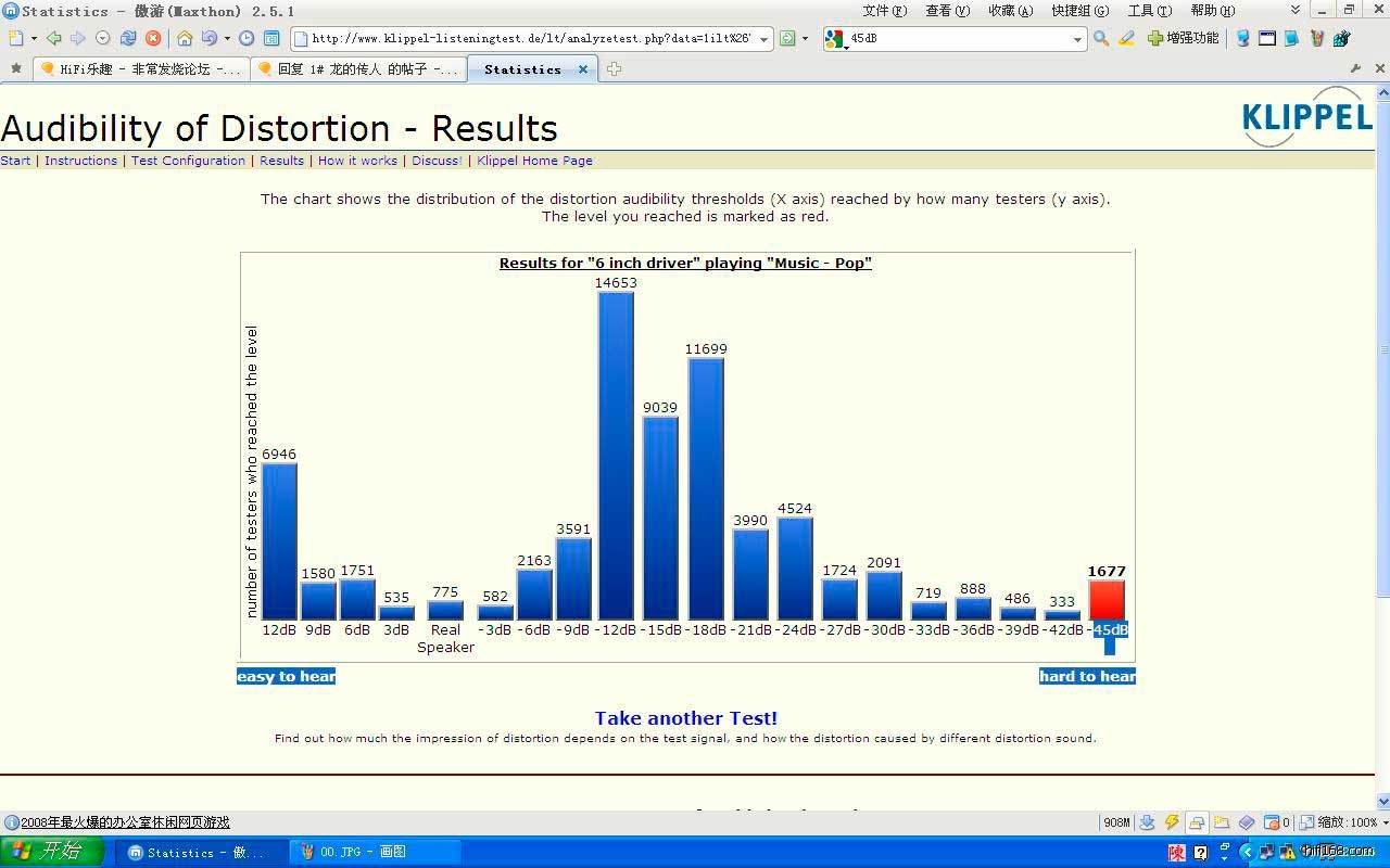 很多人很喜欢听歌。。但是。。你适合什么样的耳机呢。。我自用pansonic的耳挂。。。虽然有点漏音。。但是总体很强劲。。以下是转自某音乐论坛,new2的贴子http:// www.klippel-listeningtest.de/lt/instructions.html (把www中间的两个空格弄掉就行啦:)直接在谷歌里面搜listen test ...第一个就是 PS:百度搜不出来。。。以上是一个德国专业测试听力的网站!但它界面是E文的。下面是网上介绍:很多人号称对音质要求很高,喜欢买高端耳机,现在来测一下吧,呵呵,看看自己到底是什么水平。点start以后,他会加载一段音乐A和B,都听一下然后选择出你认为音质不好的那个。正确的话进入下一轮,错误的话会倒回一级。他会反复测试,最后你可以清楚的测出你耳朵的灵敏度。标准: 如果是在12db ~ -9db之间的话,对于您的耳朵,2000元的家庭影院和20000元的家庭影院是没区别的,所以买一台DVD+电视机就可以了,声音请用电视的喇叭直接播放…… 耳机的话,别再说你喜欢用什么森海塞尔了什么铁三角了……也别说你对音质有要求,原配耳机可以完全满足您对音质的任何要求 如果是在-12db ~ -24db之间的话,您的耳朵已经能够分辨出很多的声音细节了,呵呵,耳机的话也可以适当的贵一些啦~建议使用铁三角或者森海塞尔的中端以上级别耳机,这样能保证您的耳朵不会被低劣的声音效果所折磨。 如果是小于-27db 后,那么恭喜您!您的耳朵非常灵敏了!它配得起任何价位的家庭影院!进到网页后往下拉就看到了,点start开始上面一栏的A和B可以随意点,听出哪首音质差的就在下面选出来网吧耳机太烂了。。。上次在朋友家用音箱听,到过-24db,但网速太慢,后面一直连接不上,就没测试下去,但-24db我也一直按了二分多钟才分别出来的。这首测试的歌是来自 Tracy Chapman 的 Fast car