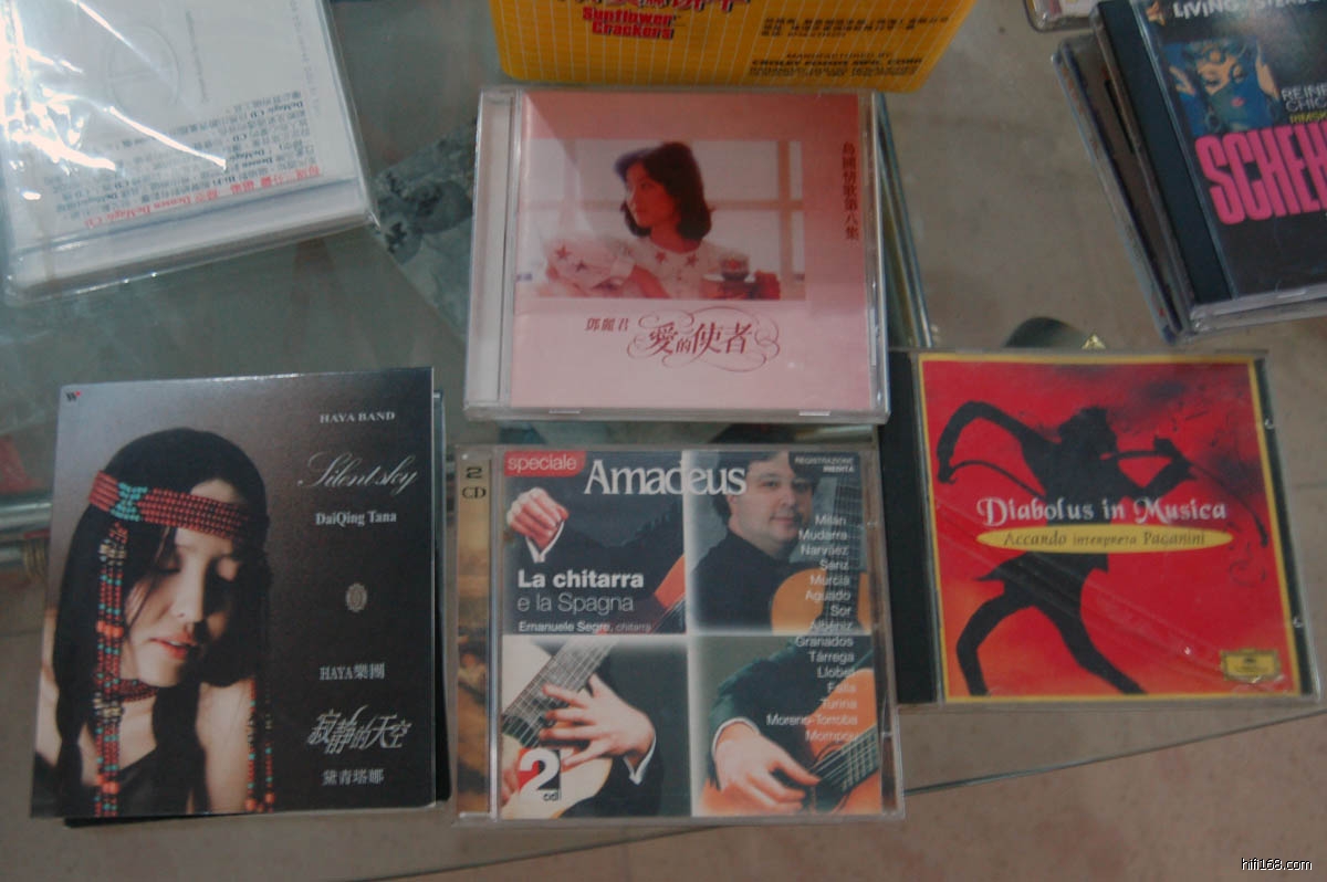 其中一位烧友带来的碟子,中间下排那张吉他演奏碟子无论演奏技巧还去曲子或是录音都非常的棒,如果还买得到我一定得买一张。邓丽君这张碟子我不知道是什么版本,环球出的,还有蓝光的标志,实际播放音质并不是很好,(2012/12/1 22:53:20 上传)