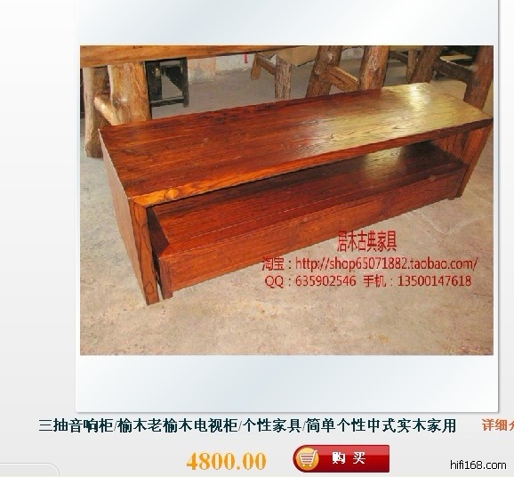 产品说明: 品名:三抽音响柜 材质:实木,纯手工制作,传统的榫卯结构,手工纯生漆,绿色环保 尺寸(cm):200*55*50左右(尺寸可自定) 来样订做 风格:创意 时尚 个性 粗犷 自然 休闲 田园 简约 古典