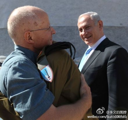 2011年10月18日,以色列用释放1027名巴勒斯坦囚犯的代价换回的被俘士兵沙力特,回到以色列,与父亲紧紧相拥,总理内塔尼亚胡在一旁微笑的看着骨肉团聚的父子俩。