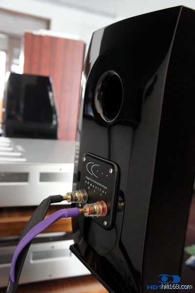 Admonitor背后的倒相孔不像一般箱子是一个塑料的管子套在箱体上的,而是与背板一体化的。接线柱不是WBT的,但还是很好用的,如果能换成WBT的就更好了。