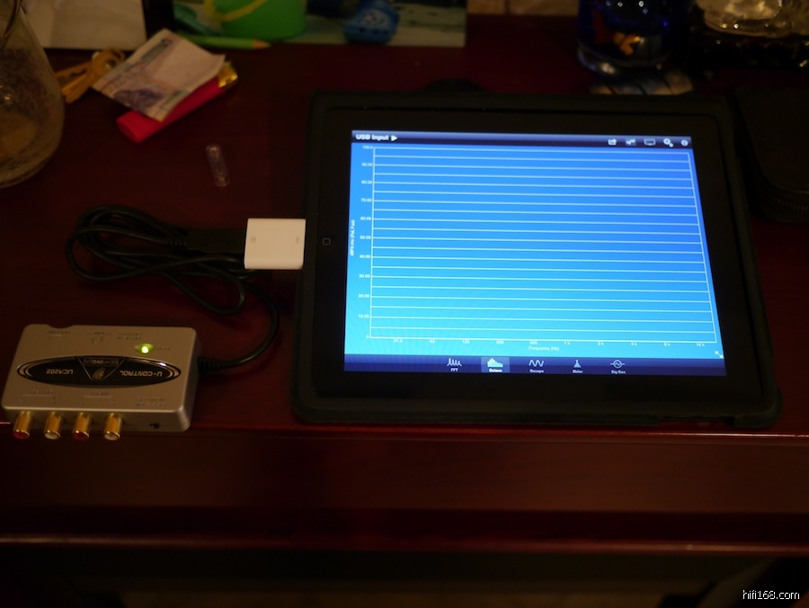 接下来使用苹果视频转接头,百灵达USB声卡以及测试软件,校验和微调