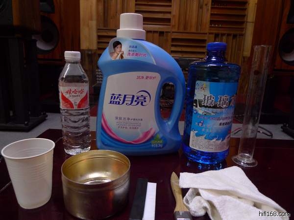 1、清洗液的调配,纯净水-玻璃水-洗涤液,比例为10:2:1调合。