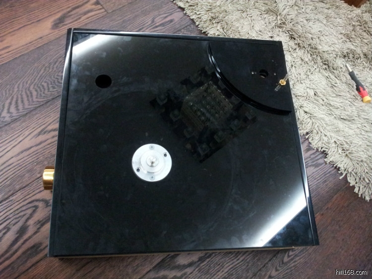 “空军一号”的转盘和一体机参考唱盘的转盘是一样的,不同的是一体机参考唱盘的马达安装在转盘底座内。