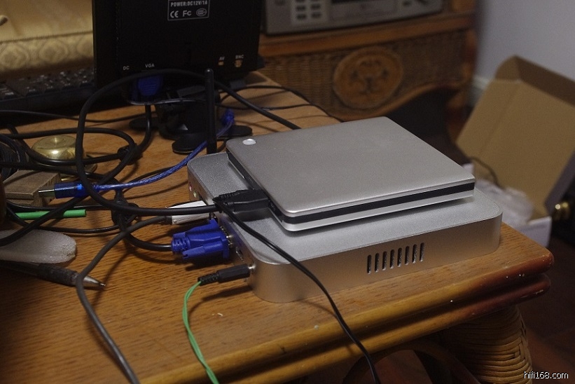 最近在琢磨PChifi,人说苹果macmini玩pchifi最好,我也搞了一台国产mini主机,抛弃原机开关电源,外置变压器线性稳压电源供电,电源相位自己调整确保正确,USB光驱播放cd,