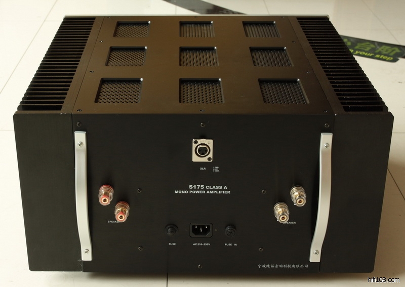 产品简介: S175纯A类全平衡单声道功率放大器是纯笛旗舰级产品,采用了以下技术:1、S175是单声道功率放大器,采用电流负反馈线路,内部为全平衡框架。2、每声道采用4对日立场效应管2SK214/2SJ77作为推动,保证电流输出稳定性。 3、纯笛定制的三垦大功率管2SC3856/2SA1492每声道20对(共计40只)作为输出,保证放大器在任何时刻都能产生大电流输出能力,同时减少了输出阻抗。4、本机电源有独立控制变压器,前部电压放大变压器和4只550W变压器(两只作为主变压器,另两只为提高大电流输出能力和提高变压器的整流效率)。为了减少变压器振动和磁漏对声音纯净度影响,采用了双层屏蔽和灌环氧树脂。 5、开机使用2级缓冲电路,减少对交流电源冲击。6、有完善的保护系统,包括输入直流保护,输出中点保护,输出过流保护,温度对静态功率的控制保护(尽可能减少环境温度对声音的影响),过热保护。同时保护系统分为二级处理,对短时间内过载等保护,采用了自动恢复性处理,对长时间或严重的问题,采用切断电源处理。7、为了防止保险丝对大电流功放的影响,改用热继电器进行保护。8、采用数控加工铝合金机箱,提高产品外观档次。S175使用注意事项: