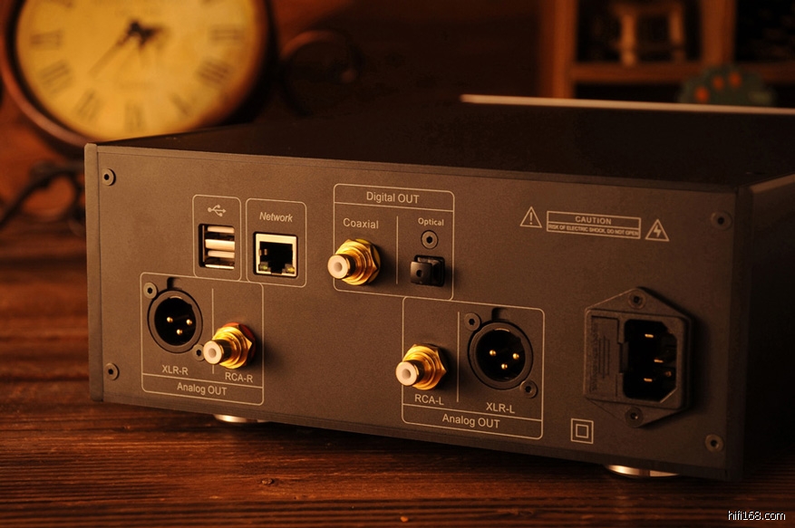 2). 模拟输出: RCA *2: 3V RMS 带音量控制 XLR*2 : 4V RMS 无音量控制 6.35mm 耳机接座1: 带音量控制, 支持驱动 32~600耳机, 特别是 32~300欧耳机表现更好。