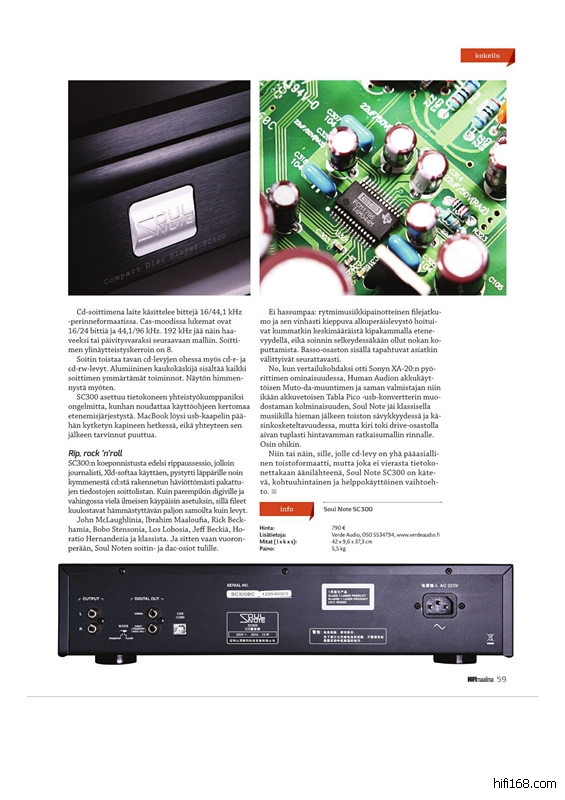 另外,欧洲著名的Hi-Fi杂志《HiFi maailma》也刊登了关于SoulNote器材的评测与报道,图片请见6、7、8三张图片。