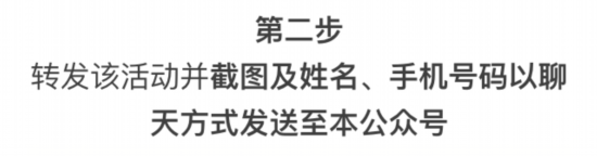 转发该活动并截图及姓名、手机号码以聊天方式发送至本公众号