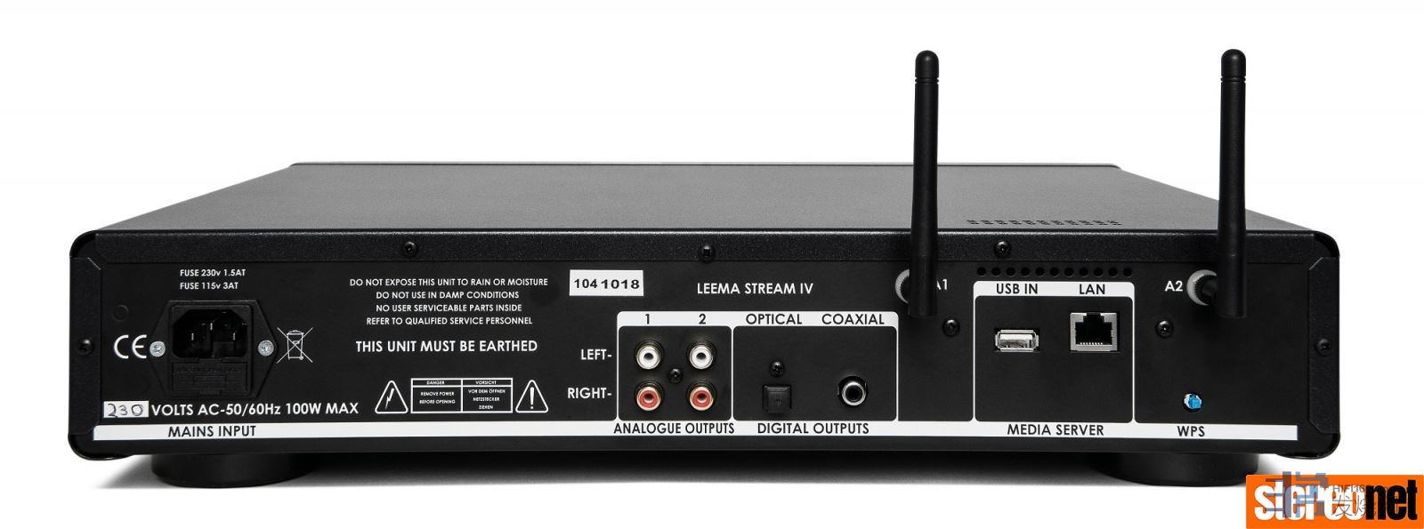 将Leema连接到网络可以通过有线或无线操作完成,通过按下背面的蓝色WPS(Wi-Fi保护设置)按钮可以简化无线操作。后面板上还装有一对Wi-Fi天线,还有一个电源插座连接其内置的Noratel线性电源。它可以通过RCA模拟输出连接到您的前置放大器或合并功放。这足够简单。