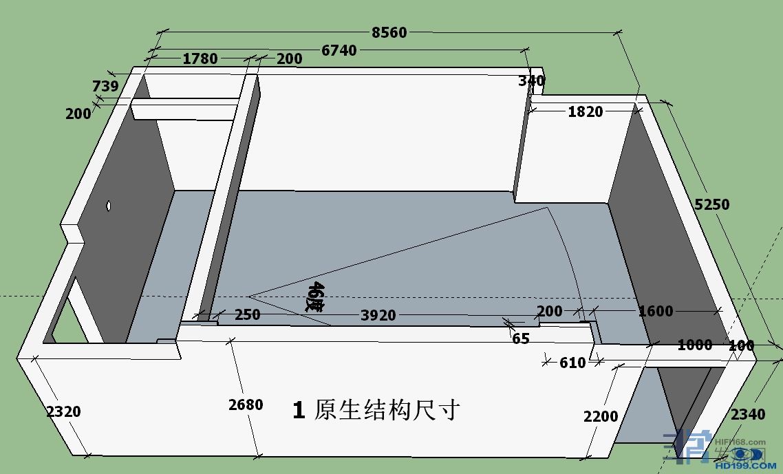 例如这样一个长8.56宽主箱后方5.59高主体2.68的异形空间: