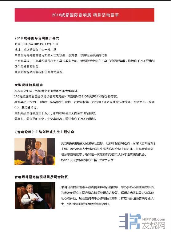 2018成都展豪华器材演示、精品音乐赏析、专家技术讲座将更加精彩,专门为展会订制的产品让来到成都展现场的爱好者受益。