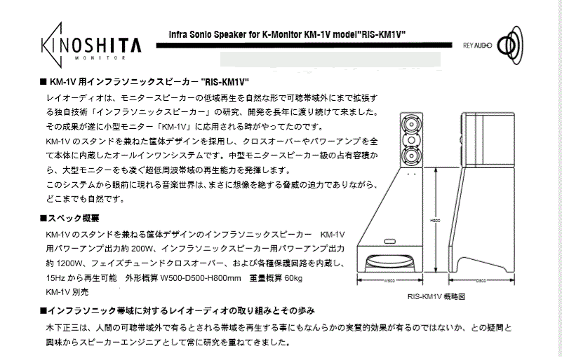 REY AUDIO 次声波音响系统 RIS-KM1V
