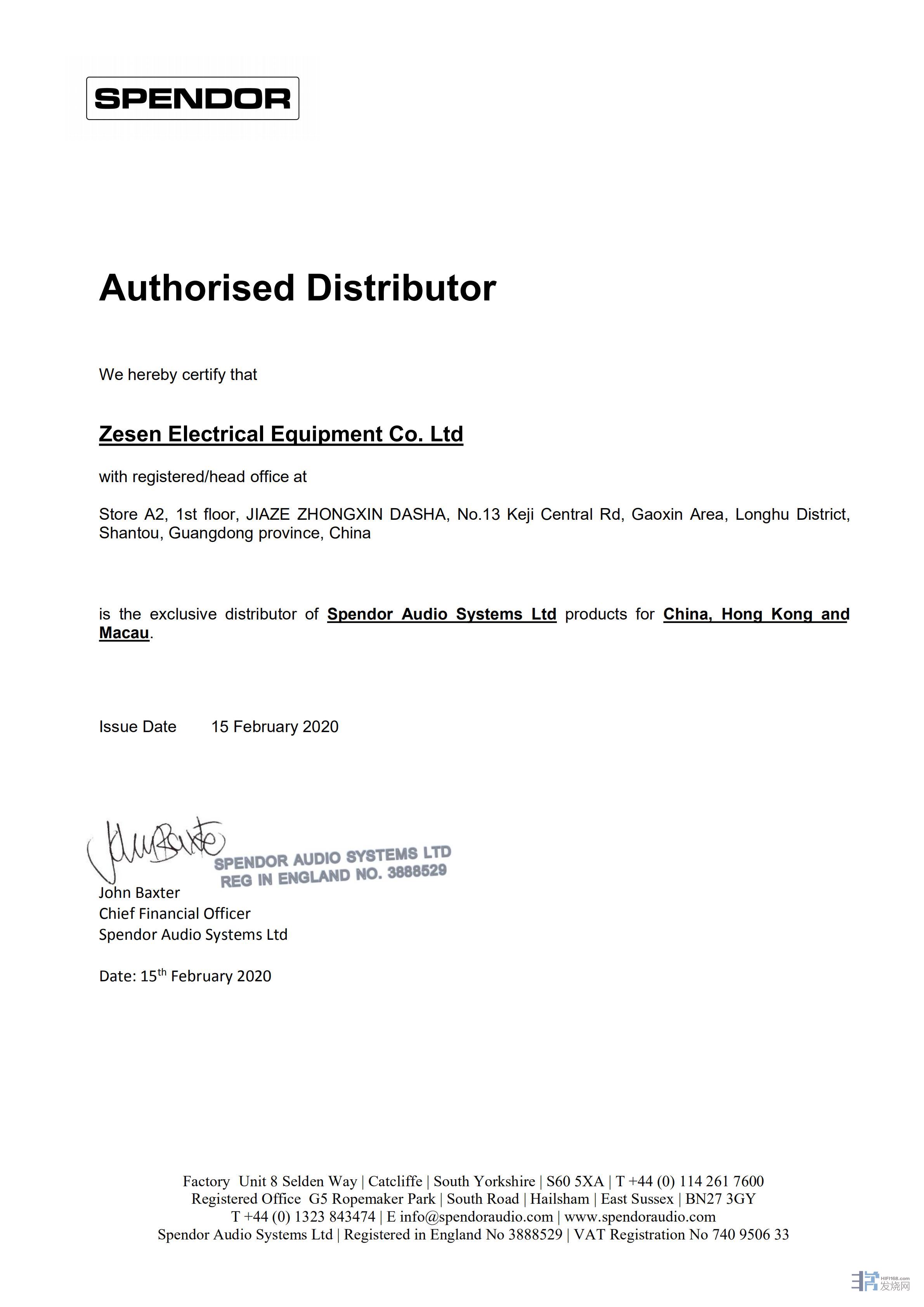 英国Spendor与泽森音响签定合作协议,即日起,由泽森音响负责英国 Spendor 产品在中国(包括:香港、澳门地区)的总代理业务,泽森音响将竭诚为广大发烧友带来英国 Spendor 优质产品,并提供相关的售后服务。特此声明。