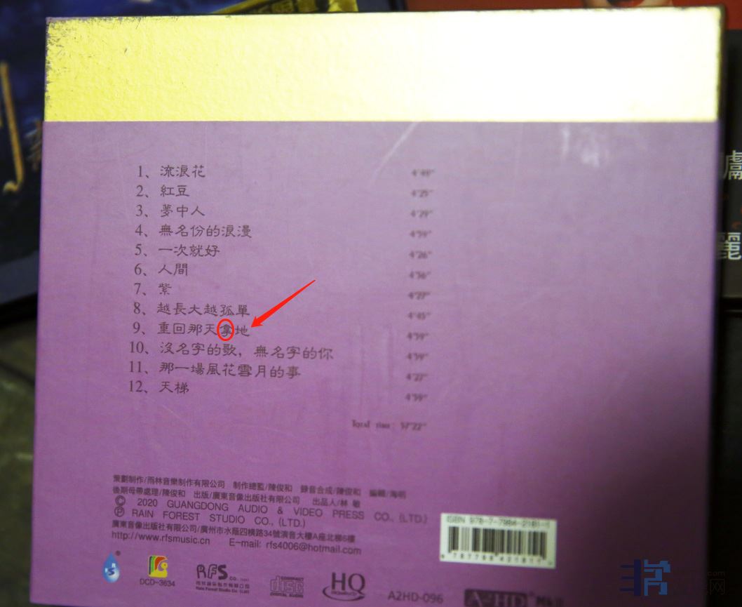无独有偶!刘德丽的《人间》封底 第九首 《重回那天那地》 ,竟然 变成 《重回那天“拿”地》。这是缺乏认真的态度,还是什么?