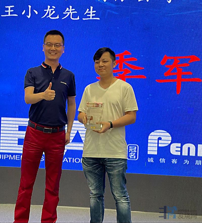 季军奖金是现金3万元。由广州子喻汽车用品有限公司王小龙总经理(左)颁奖。
