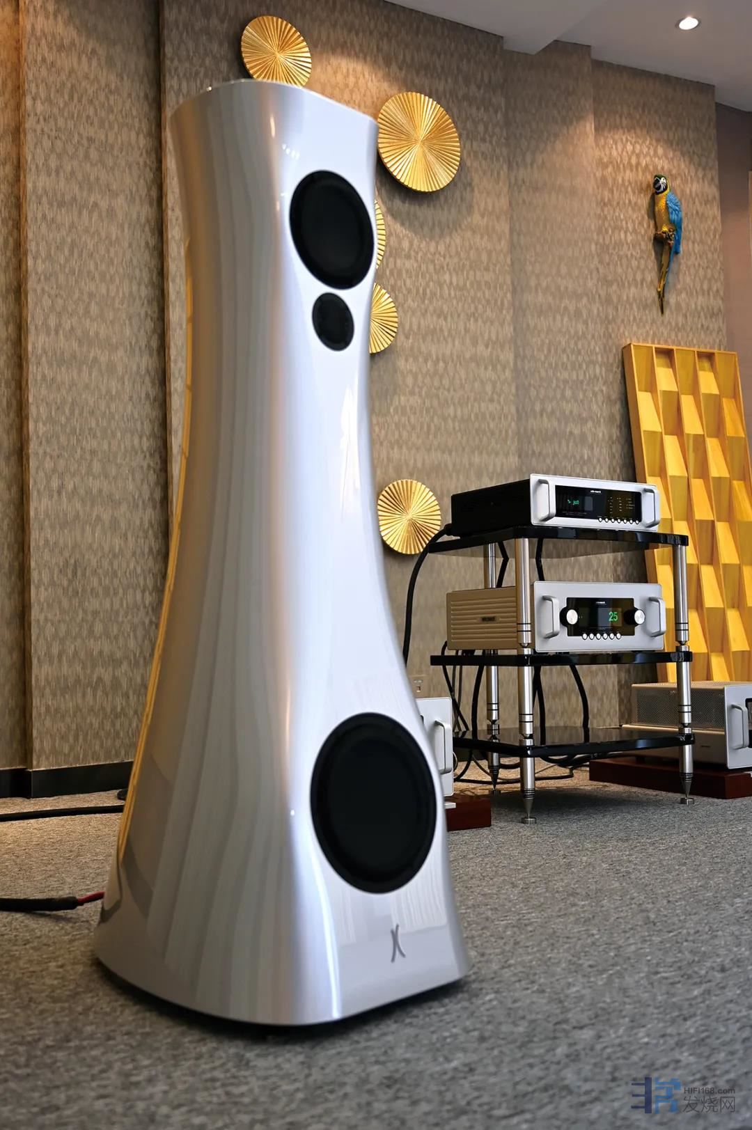 有人说它是小蛮腰,而我看像一对大花瓶,从不同角度看东西,每个人看到的也许会有些不一样,但无论是“小蛮腰”还是“大花瓶”,这里都是赞美的用词,说的就是来自爱沙尼亚国宝级品牌爱思特浓Estelon音箱。Estelon音箱我没少听,还非常熟悉,几乎所有型号的Estelon音箱我全听过,第一次听到Estelon大约是八年前刚刚引进中国的时候,两条优雅的弧线组成中国汉字“八”字型,既是Estelon的logo, 也是Estelo“小蛮腰”流线型箱体的特征,即使不听声音也能给人留下美好的印象,更别说Estelon令人一听入魂的声音表现了。