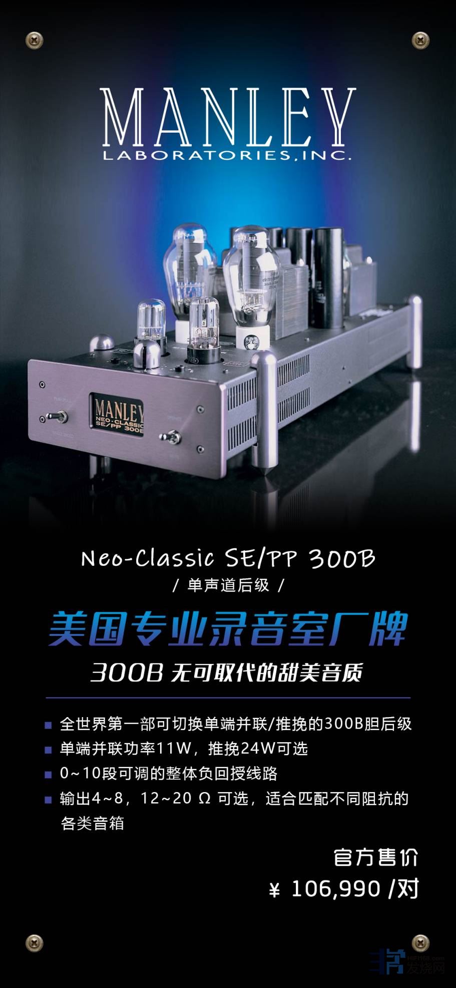 Manley 推出这一部全世界第一款可切换单端并联/推挽的 300B 后... [复制链接]