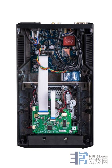 CDi-XR 拥有 Cyrus 典型机壳设计,机身左、右、顶板为一体式,这种铸造方式,不但结构更加坚固,亦可以让安装在顶板之下的线路,一定程度地减少来自下方传来的震动影响。而 CDi-XR 机身中央,架设了一道金属板作为隔离屏障,分隔开 CD 机芯与其他线路。