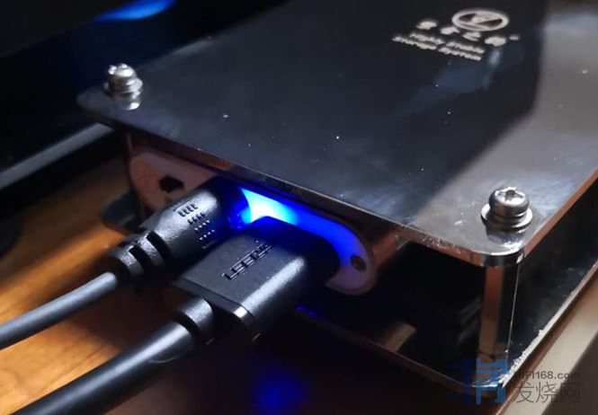 外接电源是DC12V/2A或者以上电流,打开有蓝灯亮起。