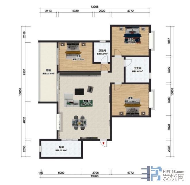 把家搬到都江堰(养老圣地,国内最长寿的地方之一,准备活到99,哈哈)后,自己花了很长时间专门找了一套合适的房。终于在近期租到了(超便宜,小地方就是好),房子的户型图如下(尺寸不管它),其中客厅有4.3*6.4*2.7米,面积差不多30平方。于是开始折腾之旅,搞房间声学处理,由于是租的,好看自然放在次要地位,能便宜咱绝不用贵的。不过,由于自己没有搞过房间声学处理,都是近期现学现卖的,也可能是错的。欢迎大家提意见和建议,说得对俺一定虚心接受。喷喷也没关系,反正,你喷的又不是俺家,更不是俺产品,哈哈。