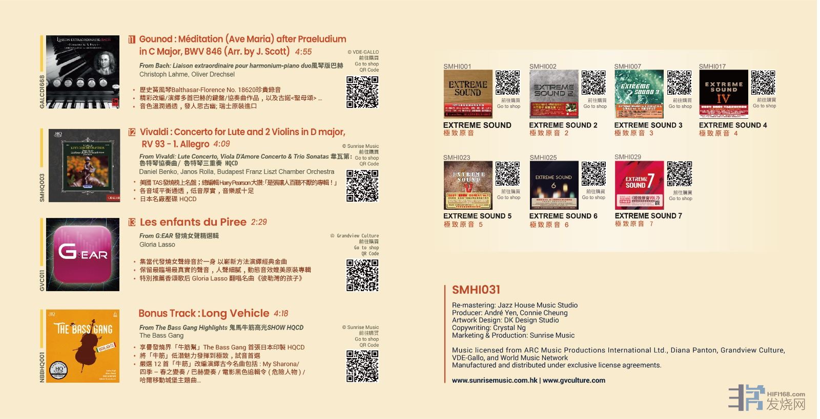 當然,也不忘向音响燒友、古典樂友獻上:Jazz女聲、牛筋、交响序曲、小提琴、……各式悦耳樂曲。