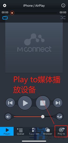 2、        点击Mcontrol图标进入Mconnect界面,在下方选择Play to媒体播放设备。