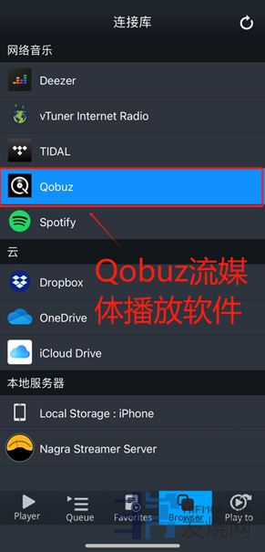 5、        点击网络音乐组里的Qobuz进入界面。