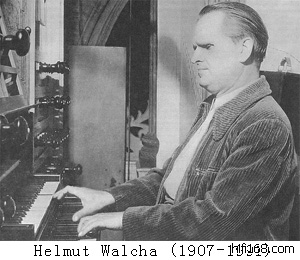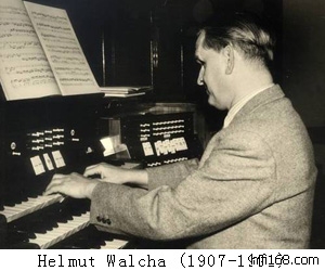Helmut Walcha(1907. 10? 12? .27-1991.08.11),出生于莱比锡,父亲Emil是邮局的领导,母亲Anna Ficken。一岁时接种天花疫苗,副作用导致了弱视,仅剩的可怜视力支撑他早年的音乐学习,深被Bach的音乐所感动,继而对管风琴产生了兴趣,经常去附近的教堂练习。尽管他的父母认为他需要到音乐学院去学习,但是他的兴趣还是演奏。