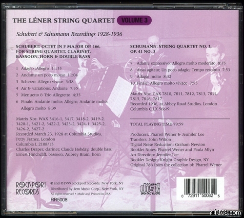 Rockport的第3辑,华丽,相当的华丽。Léner SQ.的快乐章有些粗野的味道,不如慢乐章那么得心应手而耐人寻味。Schubert的八重奏展现出了管风琴般的华丽效果,只是复刻中存在的低频过量让人听起来不大舒服。