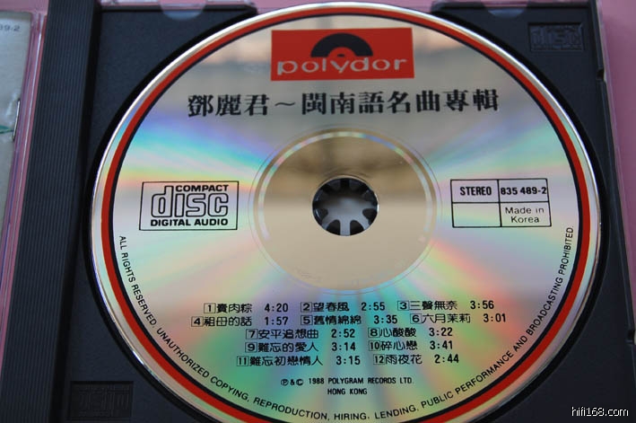 录音水平就不用多说了,如果说1980年同年录音的<势不两立>入选发烧碟,那么这张没理由不入选,只是早期一些发烧友或音响杂志编辑大都来自香港,自然粤语的<势不两立>或君其他国语歌会占先,其实人声部分的录音甚至比<势不两立>更通透更甜美,不会输给她最著名的发烧专辑《淡淡幽情》!