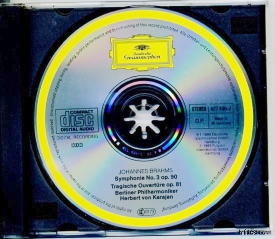 原帖由 小狗和和 于 2009-9-12 11:50:00 发表前两天买了张勃拉姆斯第四交响曲,卡拉扬80年代数码版。如图所示。CD是内圈是胶圈,而且无码,还没有标产地!只是在印刷面印着“made in W.Germany”如果是老版,那内圈应该是银圈或戒指版而非纯胶圈,如果是新版,那应该有IFPI码,最大得问题在于C