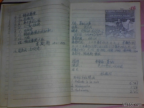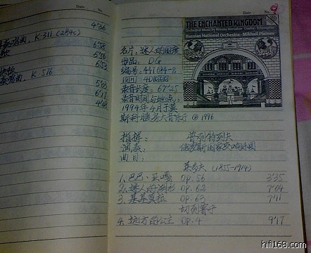 大家仔细一看就发现,笔记簿它记载的只是一些唱片的目录内容、作曲家、演奏(唱)家、指挥、乐团、购买的时间还有价钱,其实就是一本“流水账”。不过,我喜欢也经常翻翻这本将近有20年“历史”的笔记簿,每次翻阅心里总有别样的感觉,因为它——记载着自己的唱片“史”。