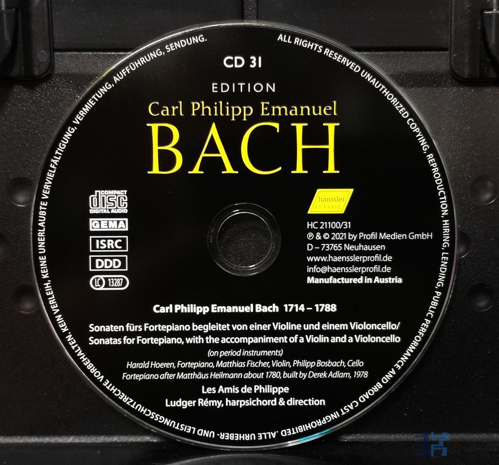 cpe巴赫在音乐史上的地位承先启后,对后世影响 很大——本身的音乐也非常耐听,他的音乐基本都听过;尤其是那26张一套的键盘奏鸣曲,非常精彩