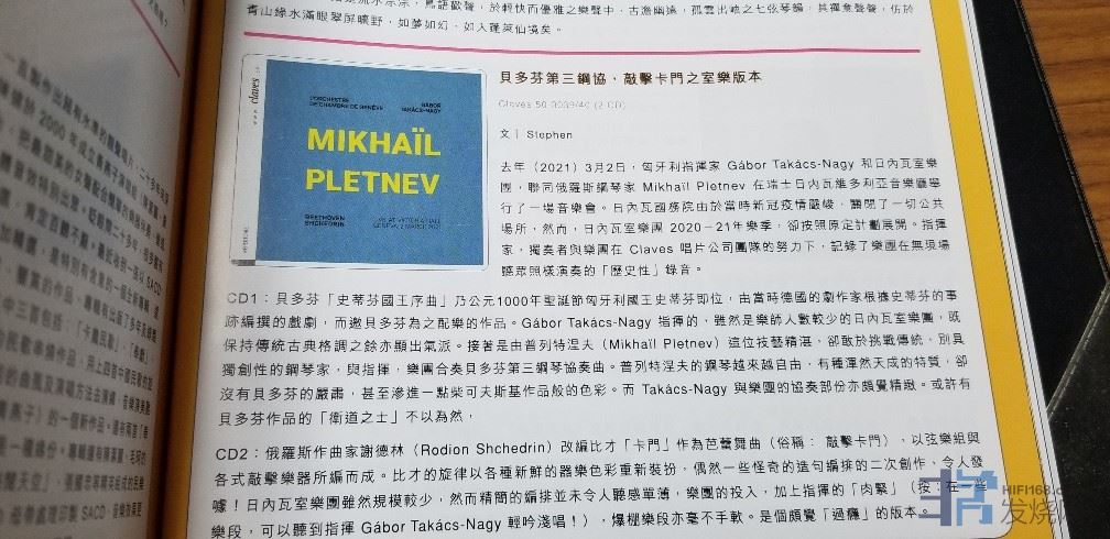 這個兩張一套的CD有些特別,是成立於1968年的瑞士唱片公司Claves在2021年心冠病毒疫情下錄音發行。在沒有觀眾的日內瓦維多利亞廳,由Takacs 弦樂四重奏創辦人Gabor Takacs-Nagy指揮日內瓦室內管弦樂團,由俄國當今鋼琴名匠,1968年柴可夫斯基大賽金奬的普雷特涅夫演出〈貝多芬C小調第三號鋼琴協奏曲〉,樂團另外演奏貝多芬〈史蒂芬王序曲〉與謝德林為弦樂與打擊樂器的〈卡門組曲〉。