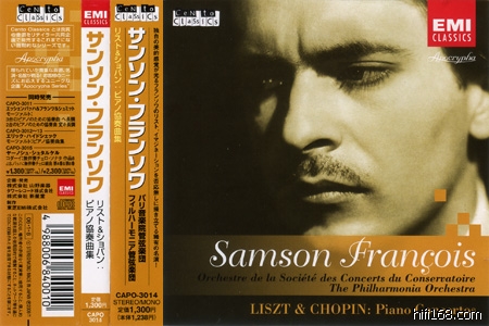 篇幅又超了,回说本CD的曲目先……两首List的钢协(NO.1、NO.2)搭Chopin E小调(NO.1),真是极好,在战后,Francois经常在演奏会中连续演奏多首协奏曲,例如1959年他曾经跟Andre Cluytens(1905-1967)在一晚演奏四首:Bartok NO.3、Chopin NO.2、List NO.1以及Ravel的左手协奏曲。本唱片的List录于1960年6月13、14日的Kingsway大厅,Chopin则录音于1954年5、6月,都是炒冷饭的录音,大家不会陌生。选个Chopin第三乐章听听吧,这音质很不错的~~