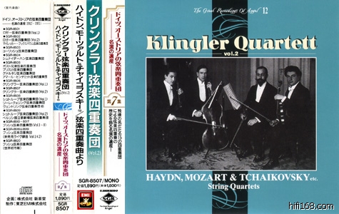 大约在1998年,日本新星堂和英国Testament在策划着把Klingler SQ.的录音初CD化,新星堂大约是由于等待庞大的德奥组全套计划完成而落了后,他们发行时间是1999年3月21日,而Testament则是1998已经发行,两者的曲目并不完全重叠。在德奥体系中,把四重奏艺术发扬广大的Busch SQ.大家都不陌生,但是作为继承传统重要一环的Klingler SQ.则相当程度地被人遗忘,CD发行的情况可以说是相当地悲惨,除开新星堂和大T,本人还真是找不出别的发行了!