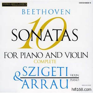 シゲティといえば十八番のバッハ演奏から、謹厳・いかめしい、といったイメージが定着しているようですが、1944年にライヴ・レコーディングされたこのベートーヴェンを聴いていただければ、それがとても一面的な評価であることを納得してもらえるでしょう。緩徐楽章では驚くほどロマンティックで自由な表情が聴かれたり、あるいは興に乗って音楽が勢いよく走りだしたりと、ライヴならではの意外性に満ちあふれた全集です。当時、四十代に入ったばかりのアラウの重厚なピアノも聴きものでしょう。