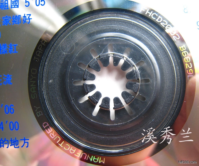 透明胶圈,无IFPI码。唱片的内圈的正面有“MANUFACTURED  BY  SANYO  JAPAN”、“FHCD2002  B6829L”的字样,“日本三洋制造”,“FHCD2002”为唱片的编号。