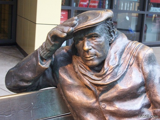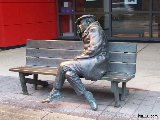 自那以后我上下班就经常走那条路,其实下班时分他就不孤独了,时不时有游人与他并坐合照,有一次有个途人路过时放慢脚步,走到他跟前,拍拍他肩膀再走,甚至见过一个流浪汉坐上去,光着膀子抽烟。