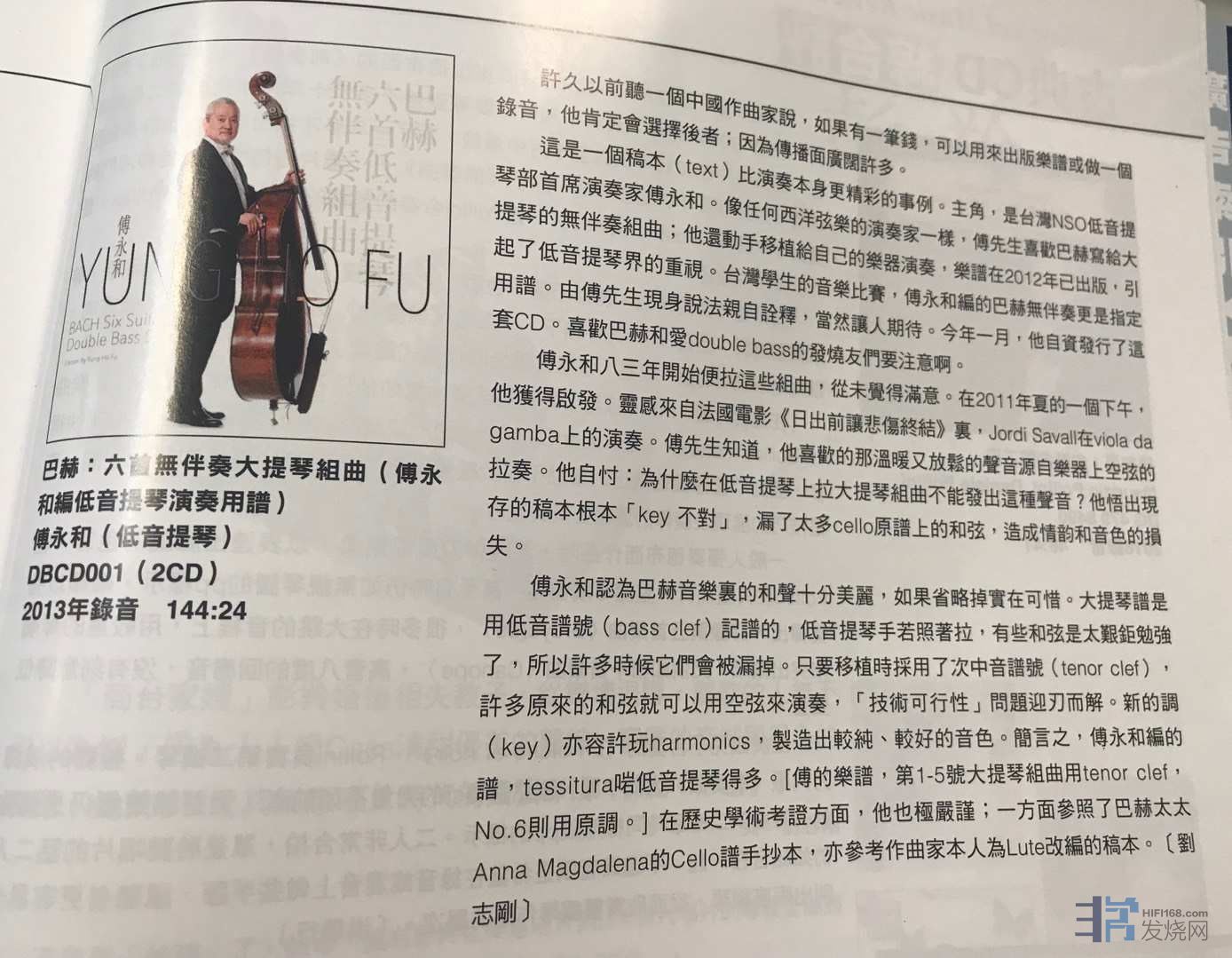 连低音提琴大师汤马士‧马丁(Thomas Martin)都说“因为有了这套琴谱,让他开始尝试用低音提琴来演奏巴赫这套无伴奏组曲”,录音专辑日前也正式发表。