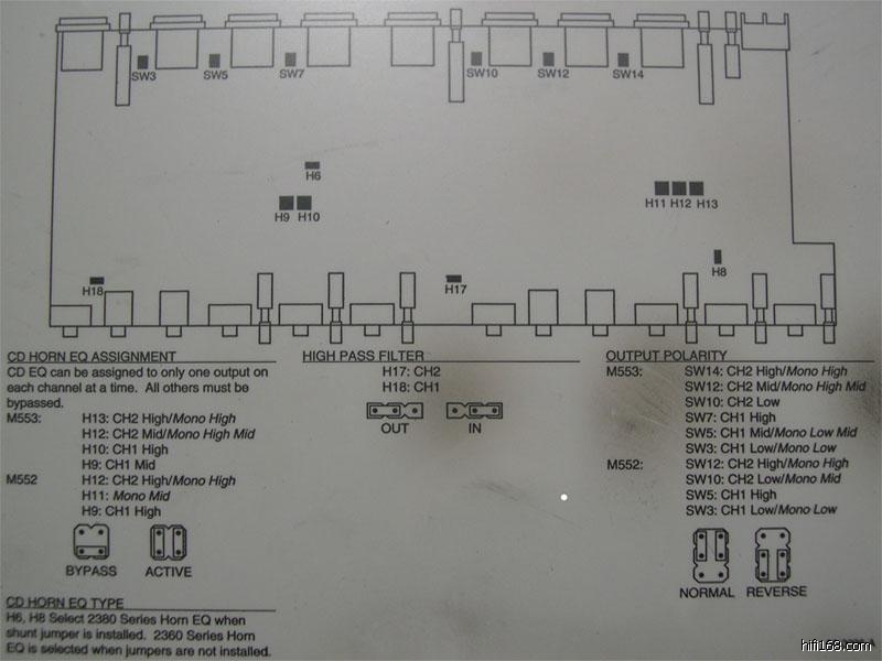 请教:电子分频器JBL553如何跳线成为二分频输出(有说明图)