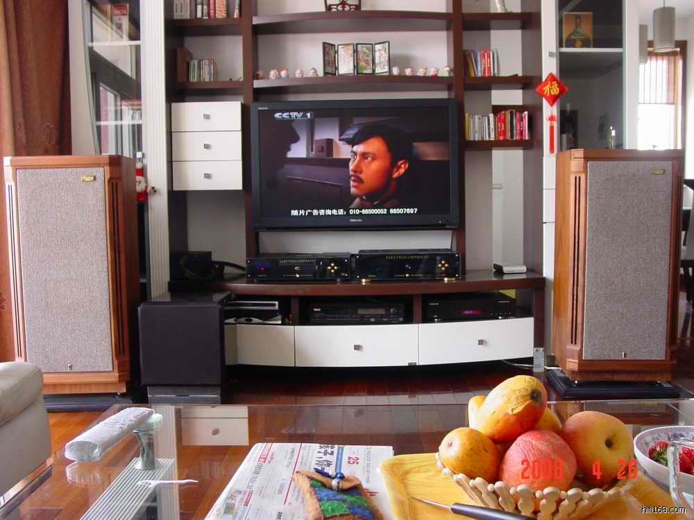 原来喜欢玩音响,近来想上高清投影无奈空间太小。重新装修听音室家人通不过,权宜之计上了这套系统。纯音响兼顾卫星电视、数字电视、高清播放、影院系统包括收音。整整八个遥控十一个电源插口。玩起来挺有意思。高清是爱视达A800+ 元谷硬盘500G,初步使用效果不错绝大部分制式的高清影片都能流畅播放。绝对对得起他的价格。电视是东芝42C3000C超高清电视1080P。功放和cd是挪威音乐之旅、主音箱是英国天朗图贝利由于空间限制没有办法上av 只好上全屏解码器以解决纯功放无法播放dta/ac3音频的问题。使用中不知道为什么dts无法转换成2.1音频输出权宜之计用一对有源音箱代替中置和重低音炮,卫星电视是0.6米和1.5米天线各一套收看146和105.5.效果还可以。